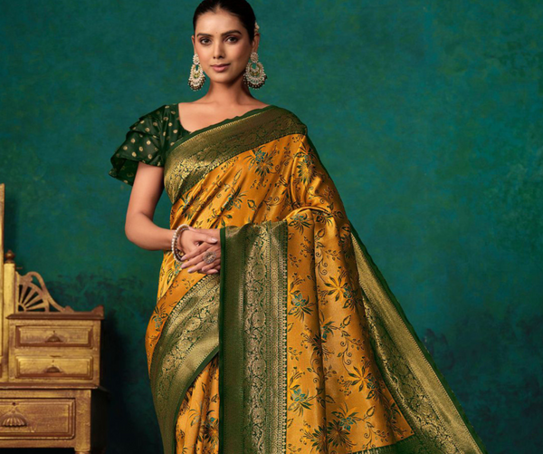 Fresh design thatbring boldness and grace - crafted with the finest Banarasi silk.